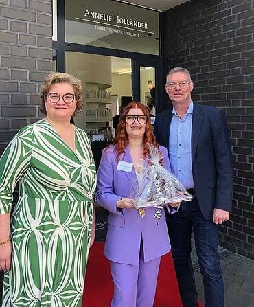 Den Friseursalon Frank Overberg in Greven hat nunmehr Annelie Holländer übernommen. Zur offiziellen "Neueröffnung" gratulierten für die Friseur-Innung Steinfurt Warendorf Obermeisterin Susanne Dorsten und Alfred Engeler von der Kreishandwerkerschaft…
