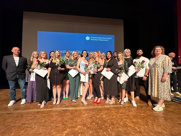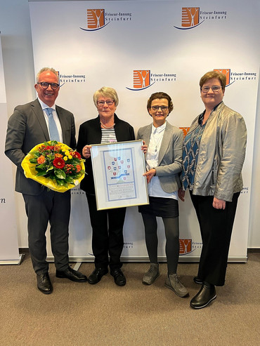 Im Rahmen der Jubiläumsfeier zum 100-jährigen Bestehen der Friseur-Innung Steinfurt wurde Friseurmeisterin Hildegard Dorsten für 50 Jahre Engagement im Friseurhandwerk mit dem Goldenen Meisterbrief geehrt.